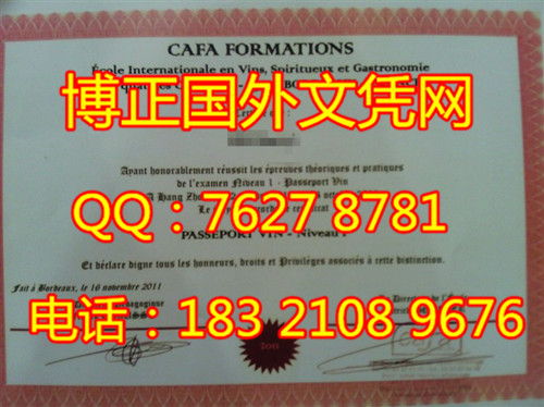 法国CAFA侍酒师学院毕业证书样本;办理法国CAFA侍酒师学院毕业证